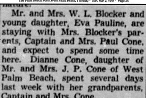 Surviving the aged sailor are his wife and a son, Percy L. Cone, of Pahokee; three other sons, W. S. Cone, Cocoa; Paul Cone, Jupiter; and Cecil Cone, Winnipeg, Canada; two daughters, Mrs. R. C. Barker, Daytona, and Mrs. C. S. Brady, Fulford; and a brother and three sisters.